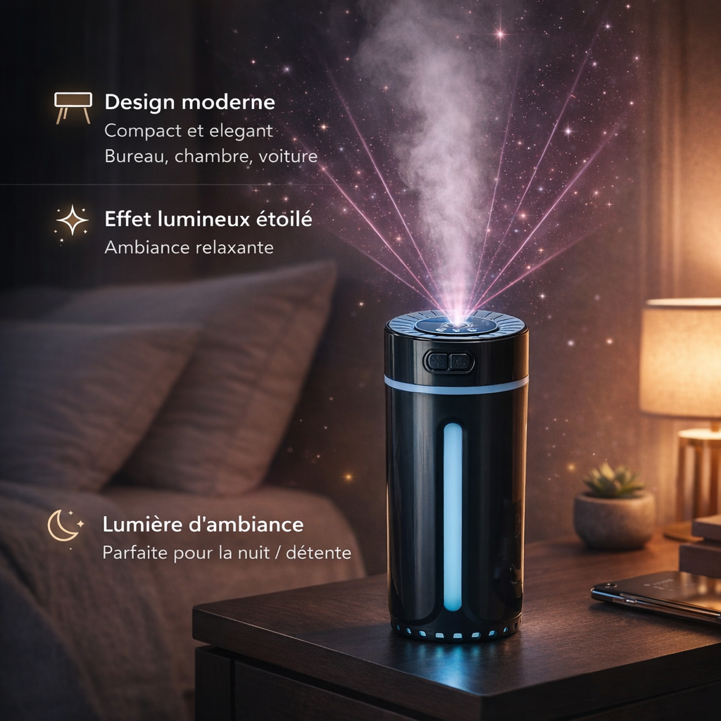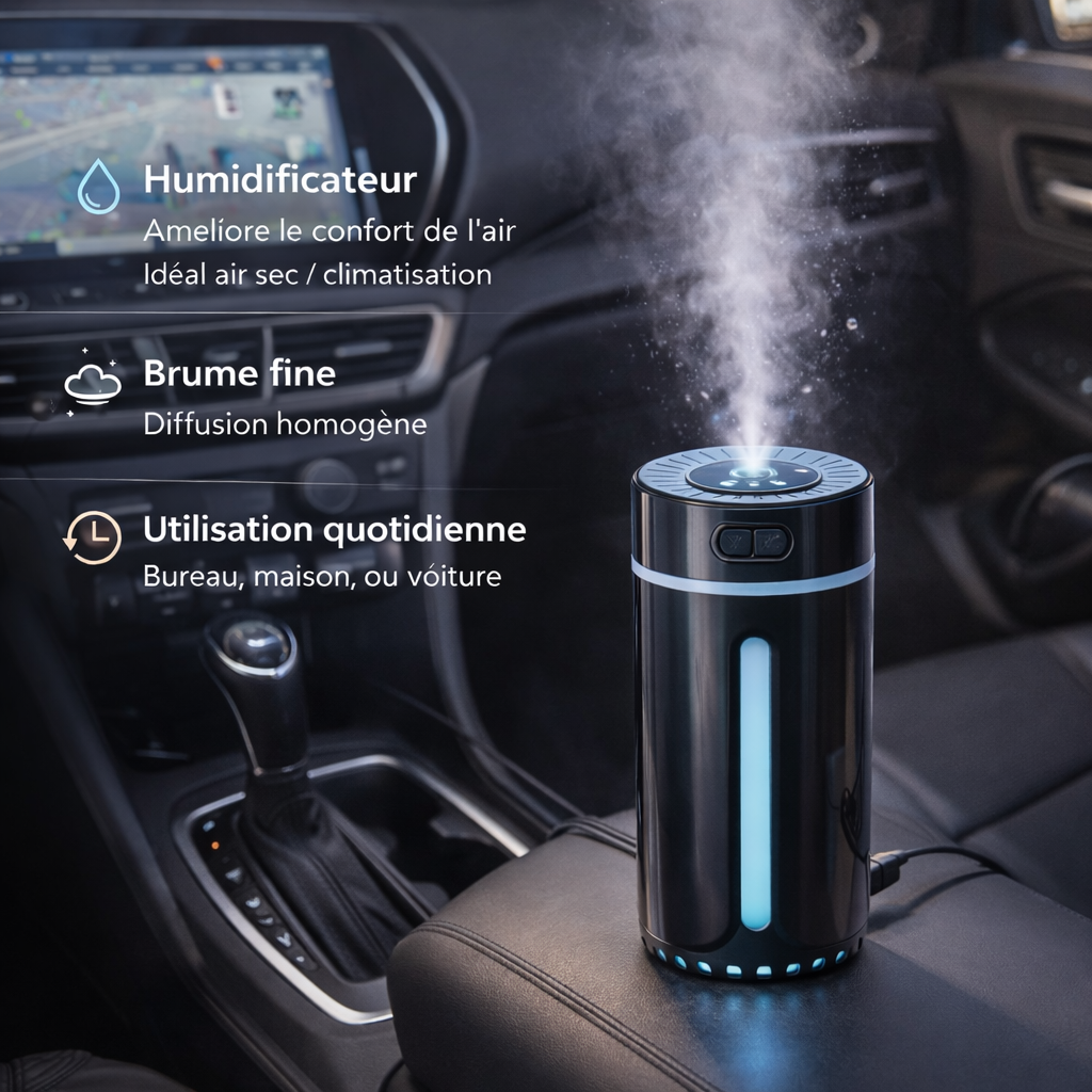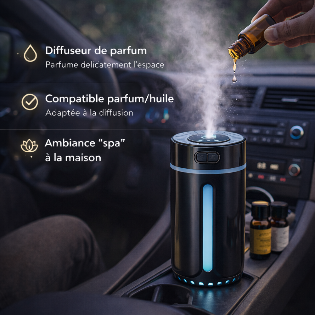 ينشر الجهاز عطراً خفيفاً ومنعشاً يخلق أجواءً مريحة داخل السيارة أو الغرفة،