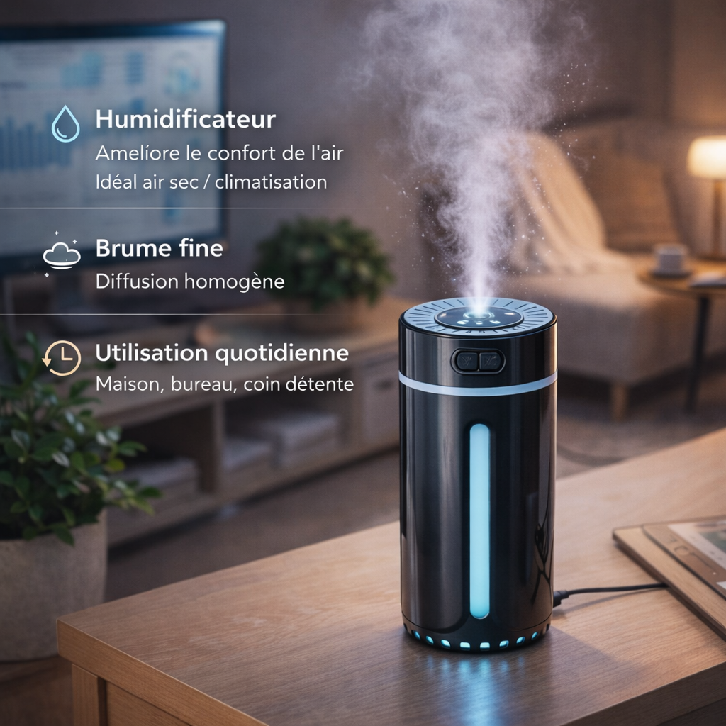 يساعد الجهاز على تقليل جفاف الهواء، خاصة عند استخدام المكيّف أو في الأجواء الجافة،