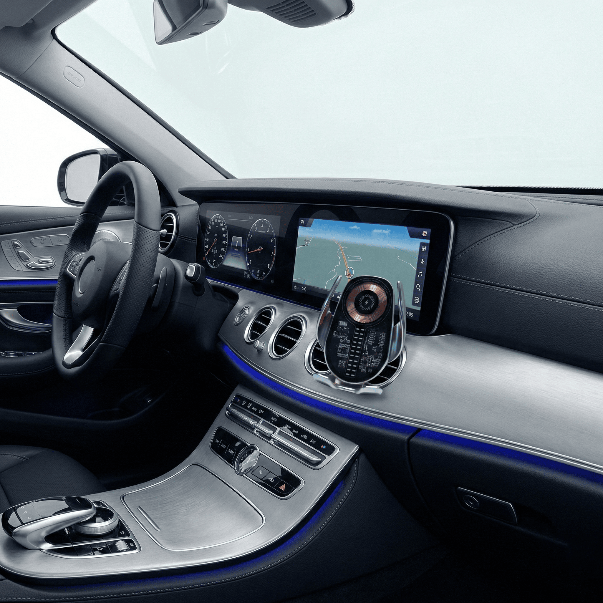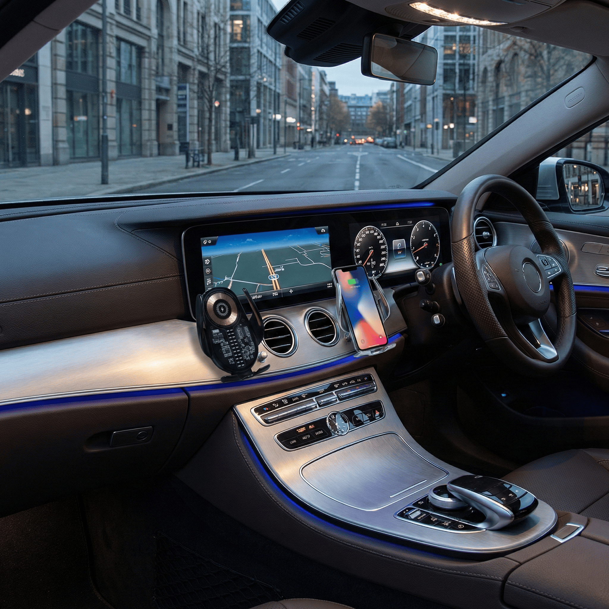 Support voiture 2-en-1 avec charge sans fil rapide, idéal pour maintenir et recharger votre smartphone en toute sécurité pendant la conduite. Design original et maintien stable pour une utilisation confortable et pratique.